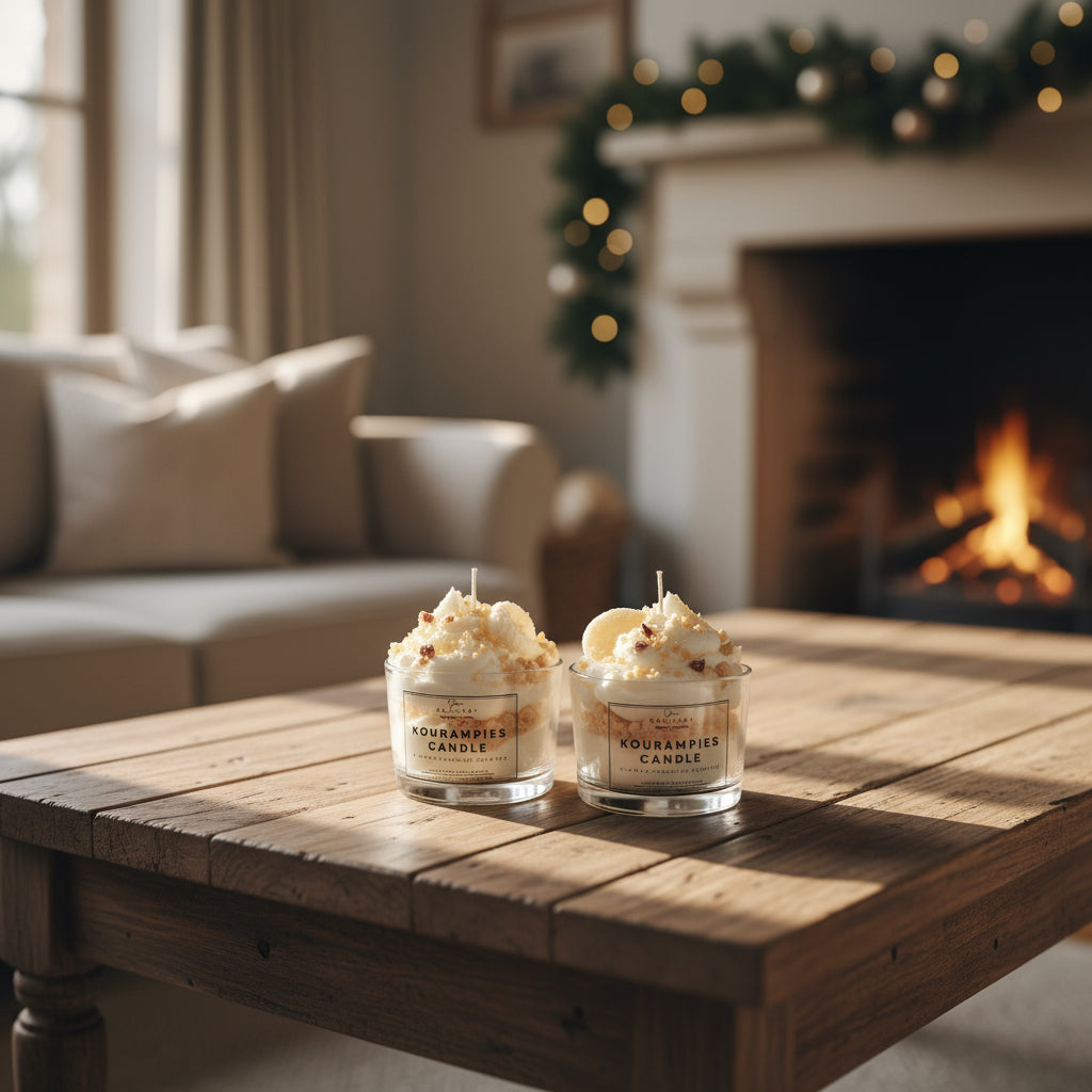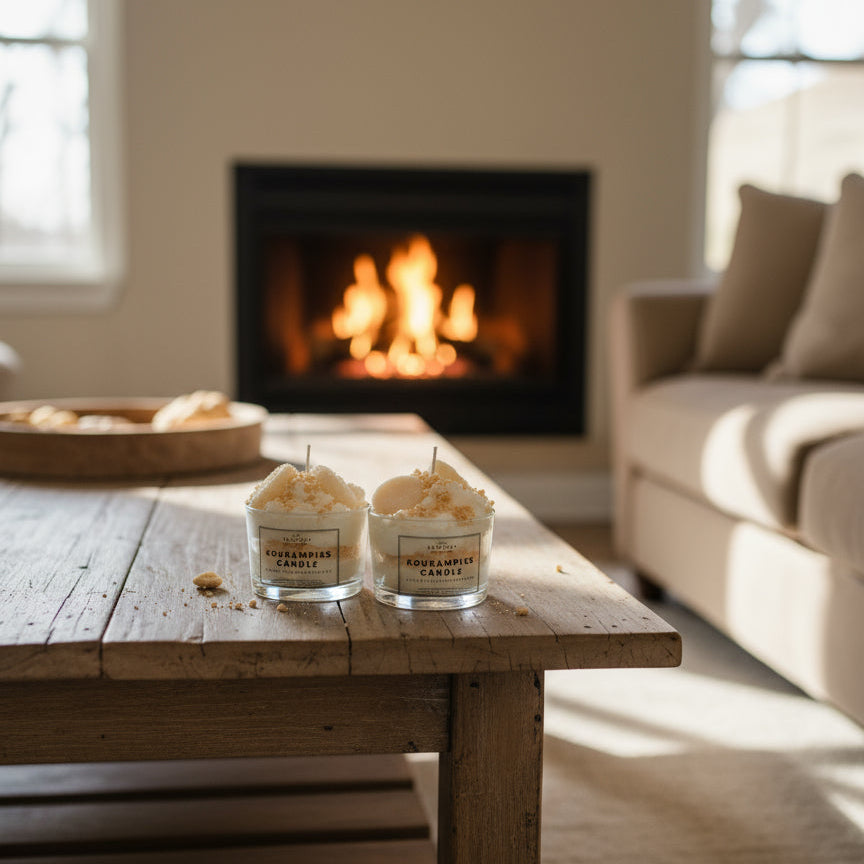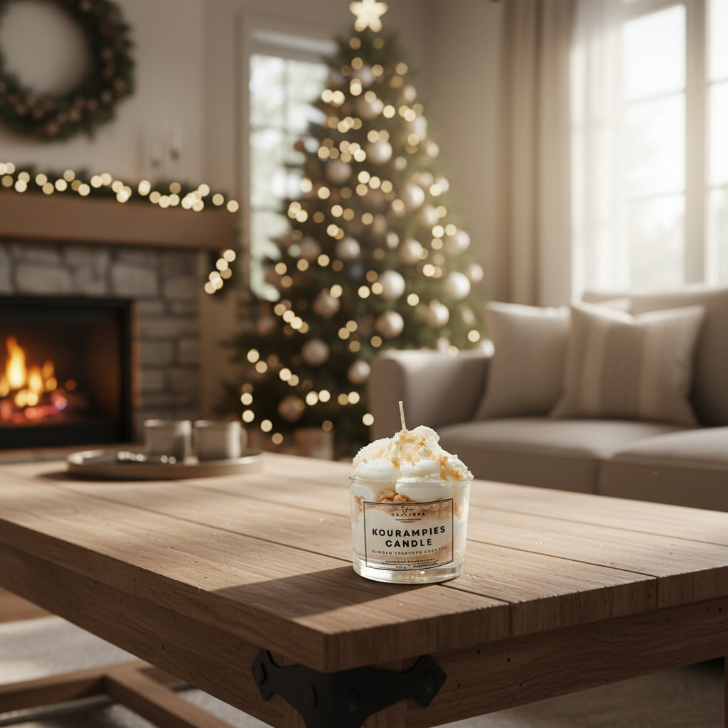 Ο "Κουραμπιές" είναι ένα χειροποίητο αρωματικό κερί σόγιας, φτιαγμένο με την ίδια φροντίδα και λεπτομέρεια που φτιάχνουμε και τα γλυκά που αγαπάμε στις γιορτές. Απαλή, ζεστή μυρωδιά από αμύγδαλο, βανίλια, βούτυρο και άχνη ζάχαρη, που γεμίζει τον χώρο με γλυκιά νοσταλγία και οικογενειακή θαλπωρή.