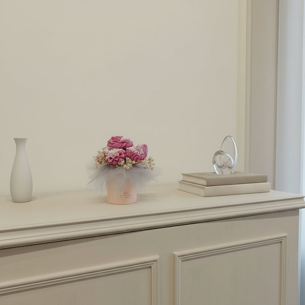 Μπουκέτο από κερί σε μικρό στρογγυλό κουτί 13X14cm